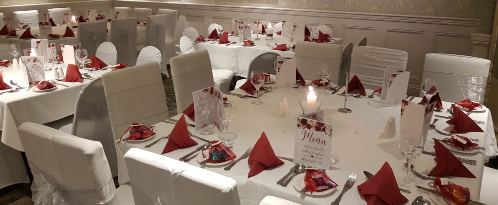 Tables will be arranged in groups of 6 or less to facilitate social distancing to ensure that your guests will be kept safe. We offer personalised menus as part of our wedding packages to add an extra unique touch to your wedding. We dress our tables and chairs in crisp, white linen which are accented by decorative silver sashes to add a sophisticated touch to your wedding decor.